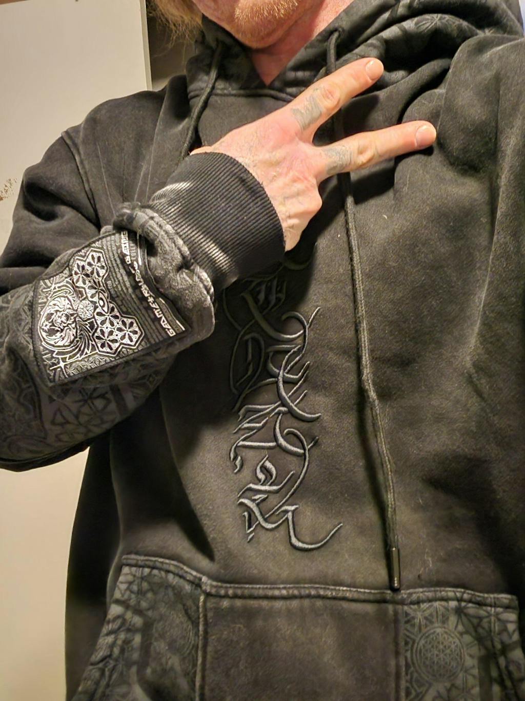 ✦ Over-sized embroidered border patch, hood woven patch, and embroidered sleeve logo