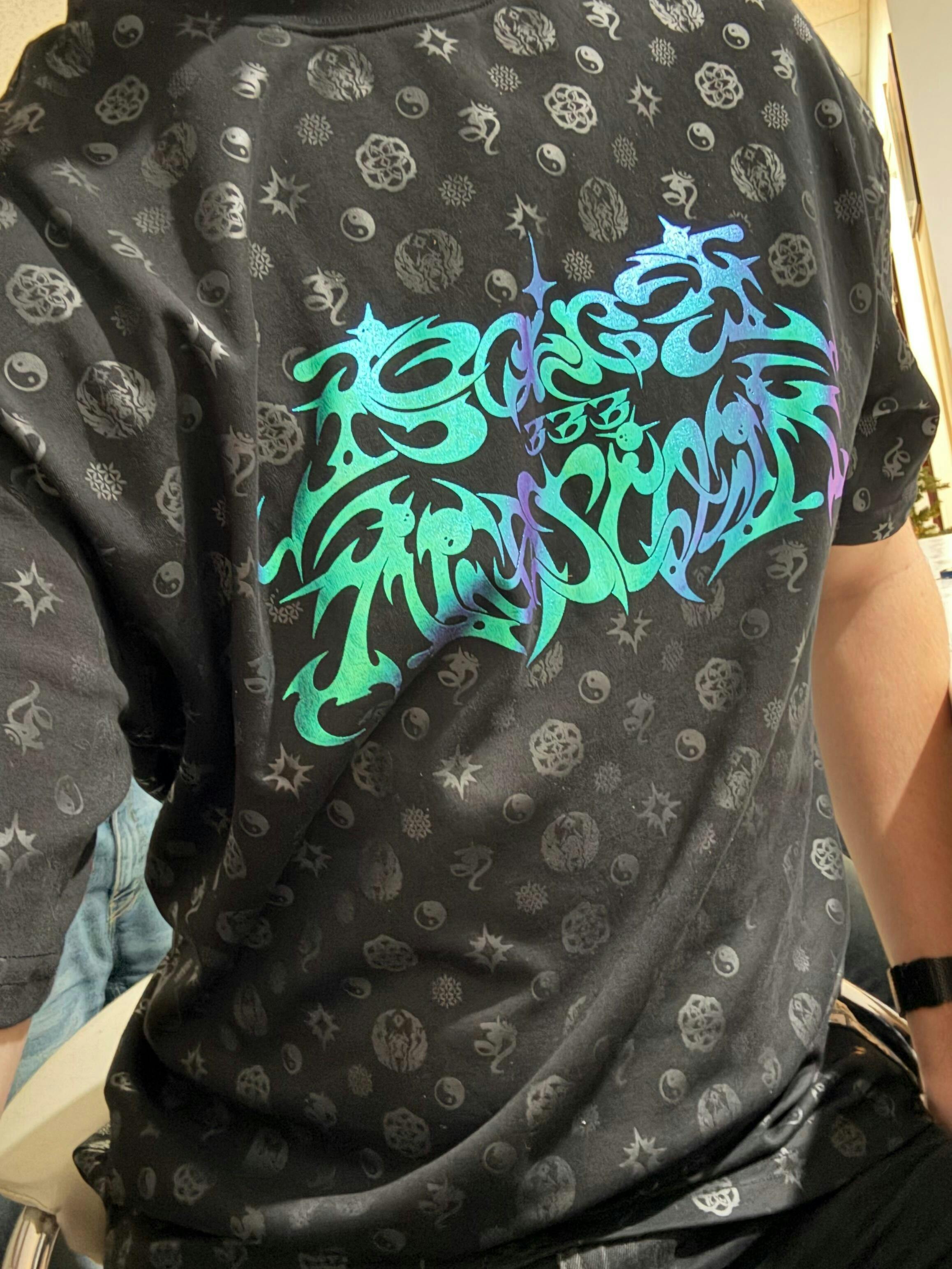 • Features premium metallic foil screen prints, a custom logo patch at the hem